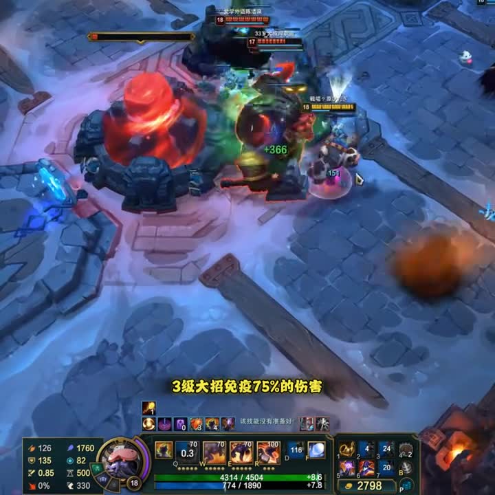 牛头的q和w也只有恐怖的两秒,仿佛在海克斯大乱斗中玩着无限火力的牛头,三级大招免疫百分之七十的伤害,c d只有十四秒,开完大招还有四秒的cd,相当哇塞。