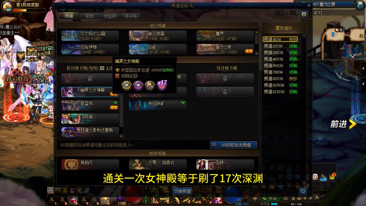 通关一次蔚蓝号等于刷了十五次深渊,通关一次女神殿等于刷了十七次深渊,通关一次噩梦循环等于刷了十九次深渊。