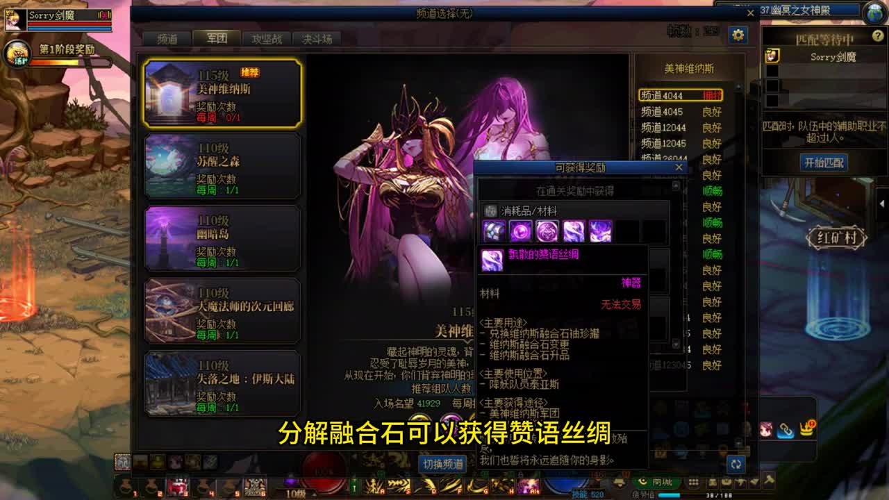 建议刷的第六个地图,军团本美神维纳斯可以获得防具融合时和赞,与丝绸分解融合时可以获得赞与丝绸,赞与丝绸升级融合时可以提升大量名望。