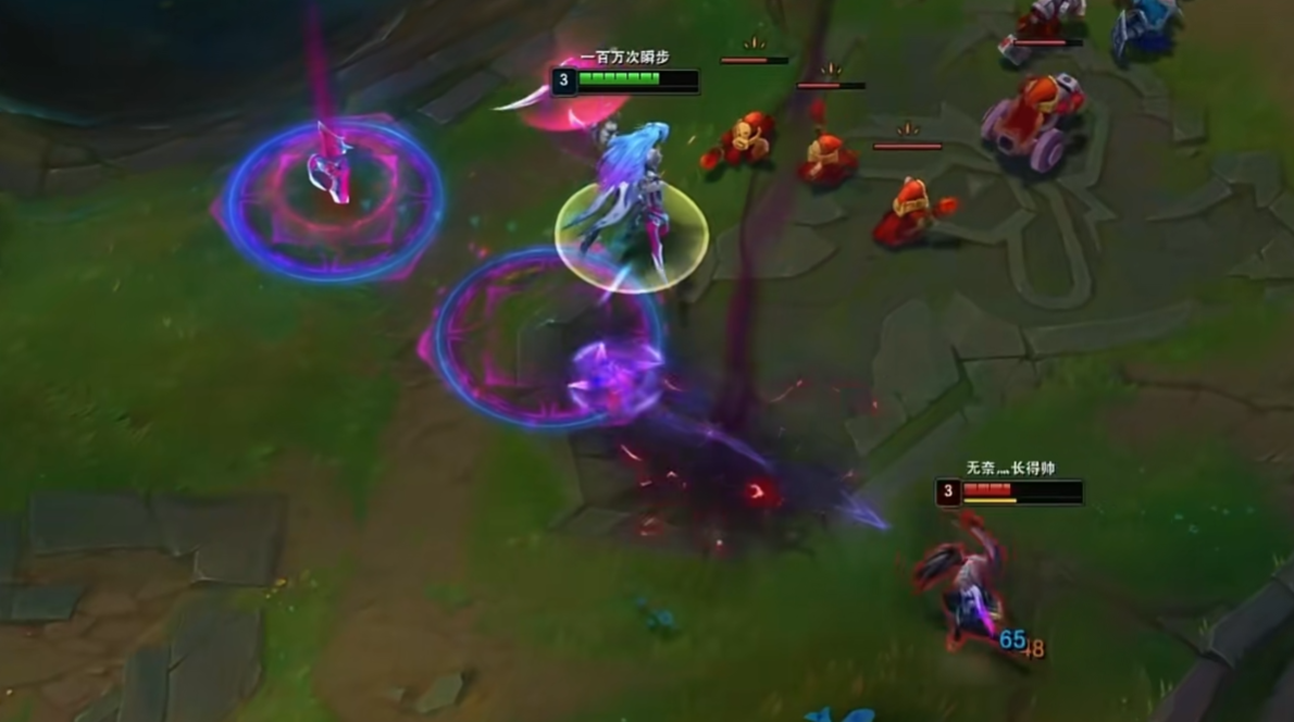 血量不健康的阿卡丽,百分之四十左右就是斩杀线,捡被动打出伤害,AEA点燃就能带走。