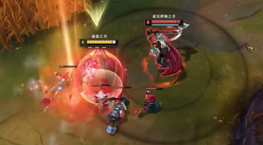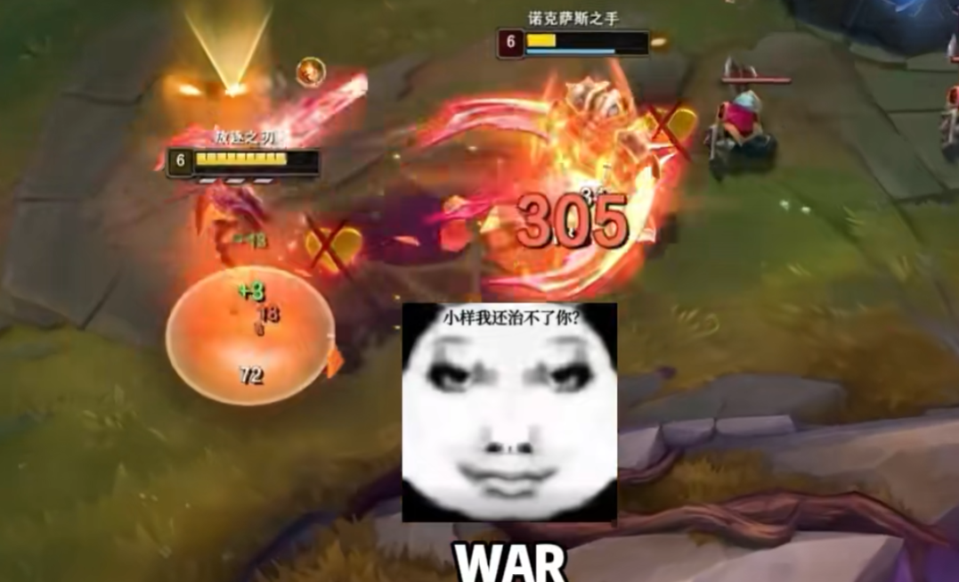 换血时机最佳的时候就是诺手用Q技能的时候,就可以上去凶他,避免Q回血,注意三段Q一定要在他E用完。
