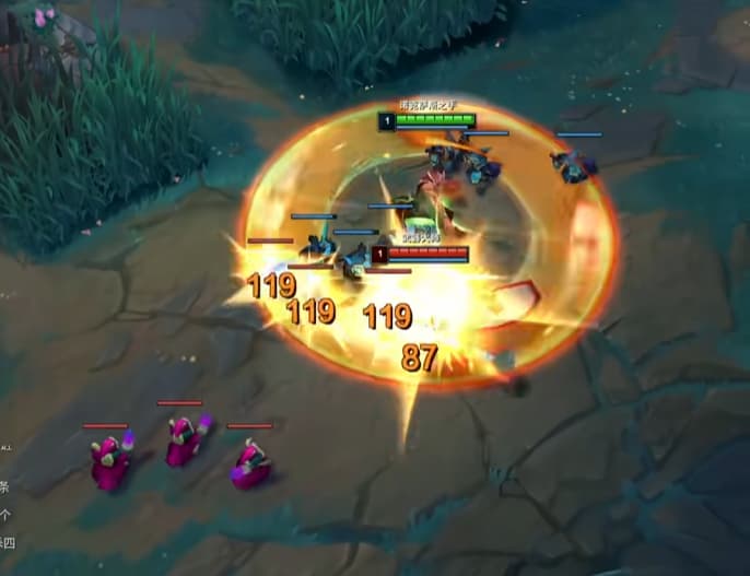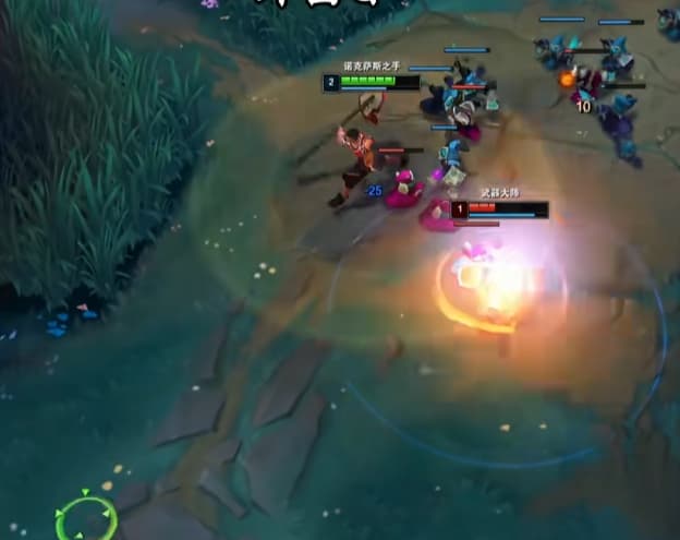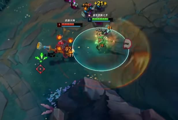 很多兄弟不知道诺手怎么打武器,打武器需要拉扯着打,打武器一级学Q,看情况外圈刮。
