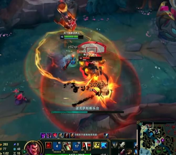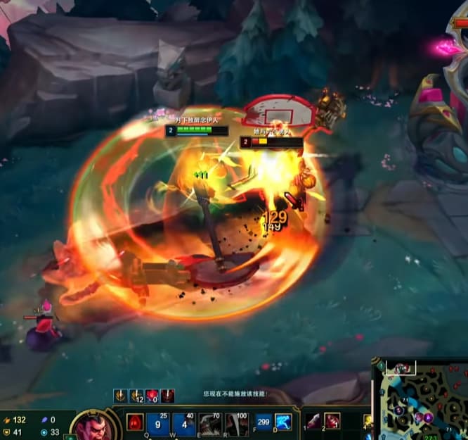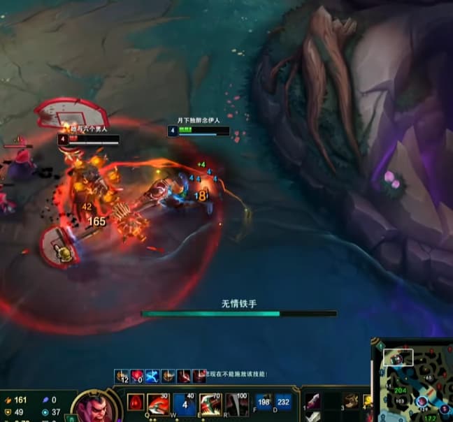二级的一瞬间,Q外圈刮W黏住,上前A血怒,基本上铁男就无法对线了。