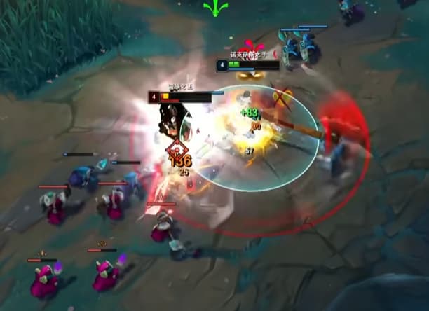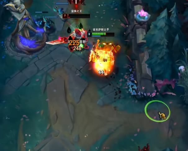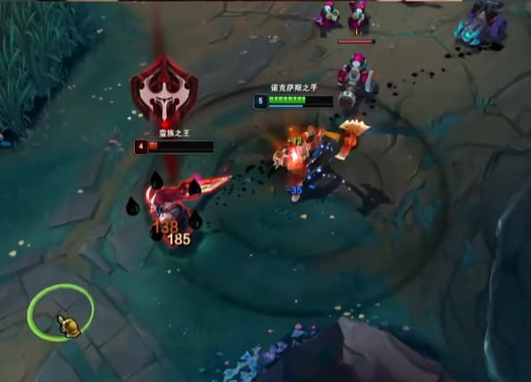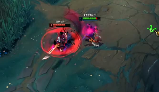 诺手打蛮王一级学W,天赋征服者加骸骨,一级提前站草丛遇到就A边走边A,记得往回拉别被E蹭到。