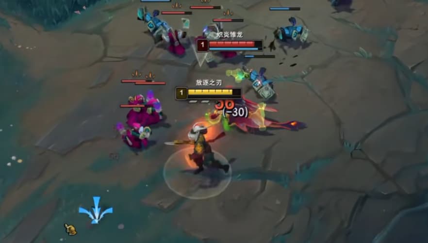 一级不警觉的小火龙根本没法打锐雯,只要不他不看草,就绕他。
