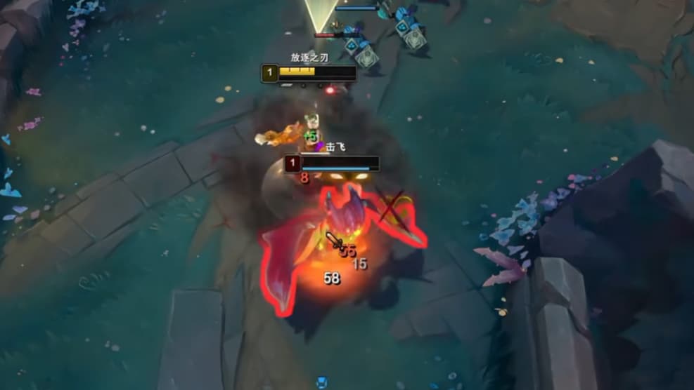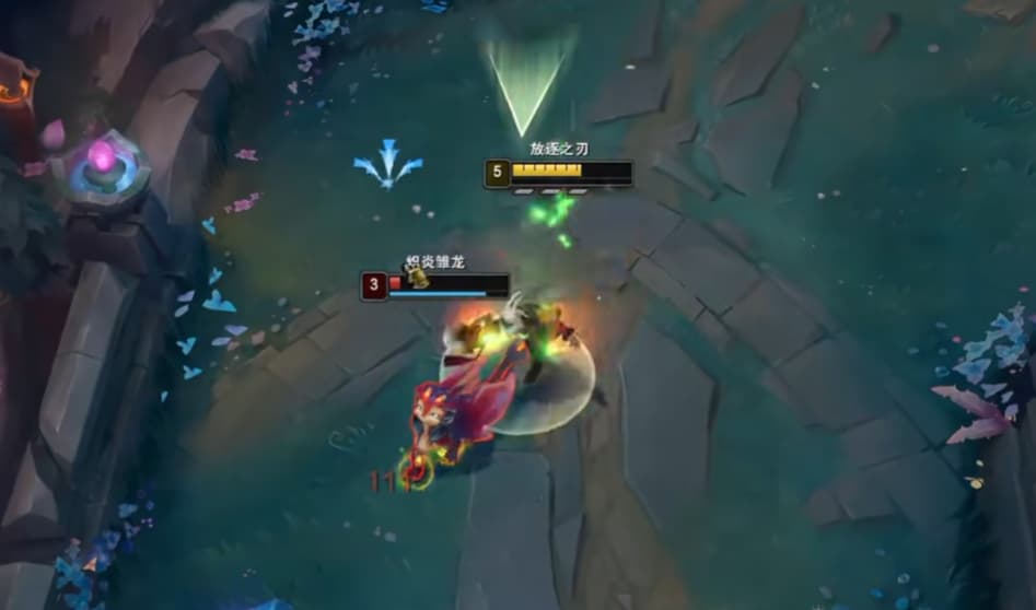 一级老规矩极限CD卡Q攒被动上线往第一个草丛靠,遇到了就直接连招,如果没遇到就直接绕身后位置,小火龙如果往前走的话满血就是斩杀线。