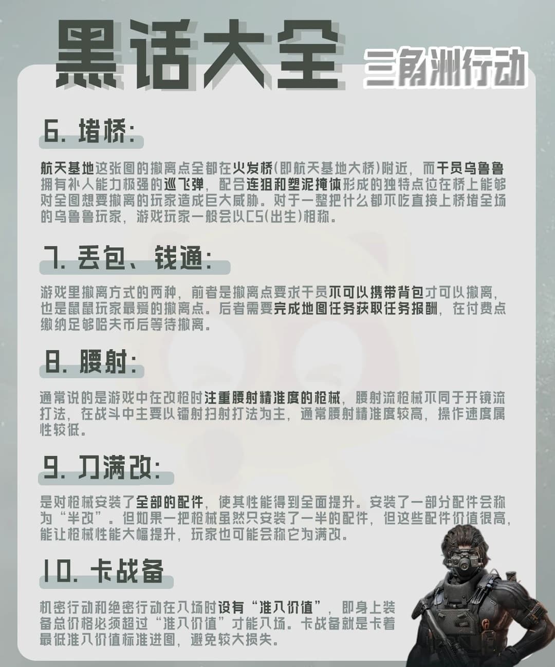 特指在航天基地火发烧桥蹲守,用乌鲁鲁巡飞弹+连狙+塑泥掩体封锁撤离点,这类玩家被称为“CS(出生)”。