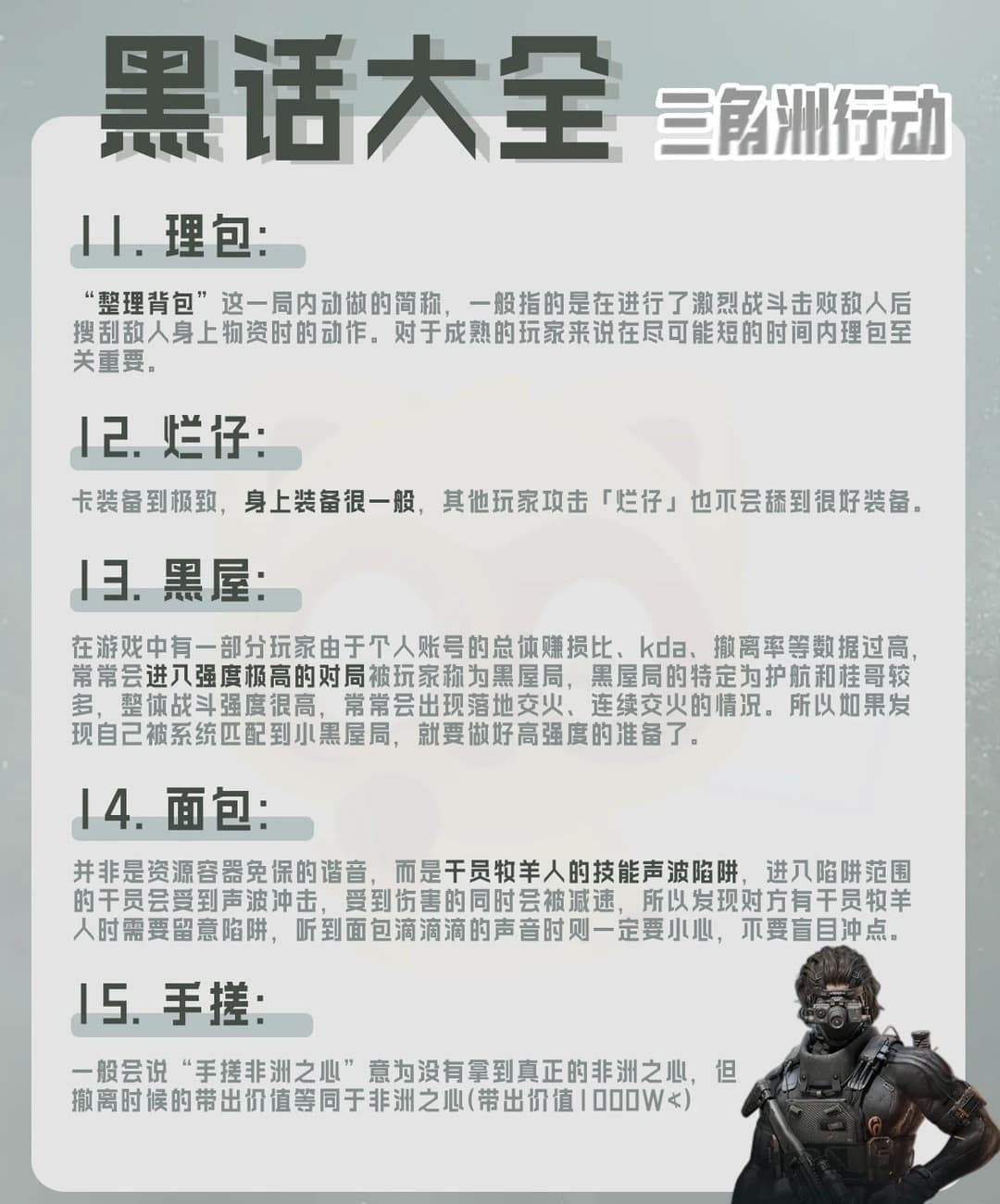 “整理背包”的简称,指击败敌人后搜刮物资的动作,快速理包是成熟玩家的核心能力。