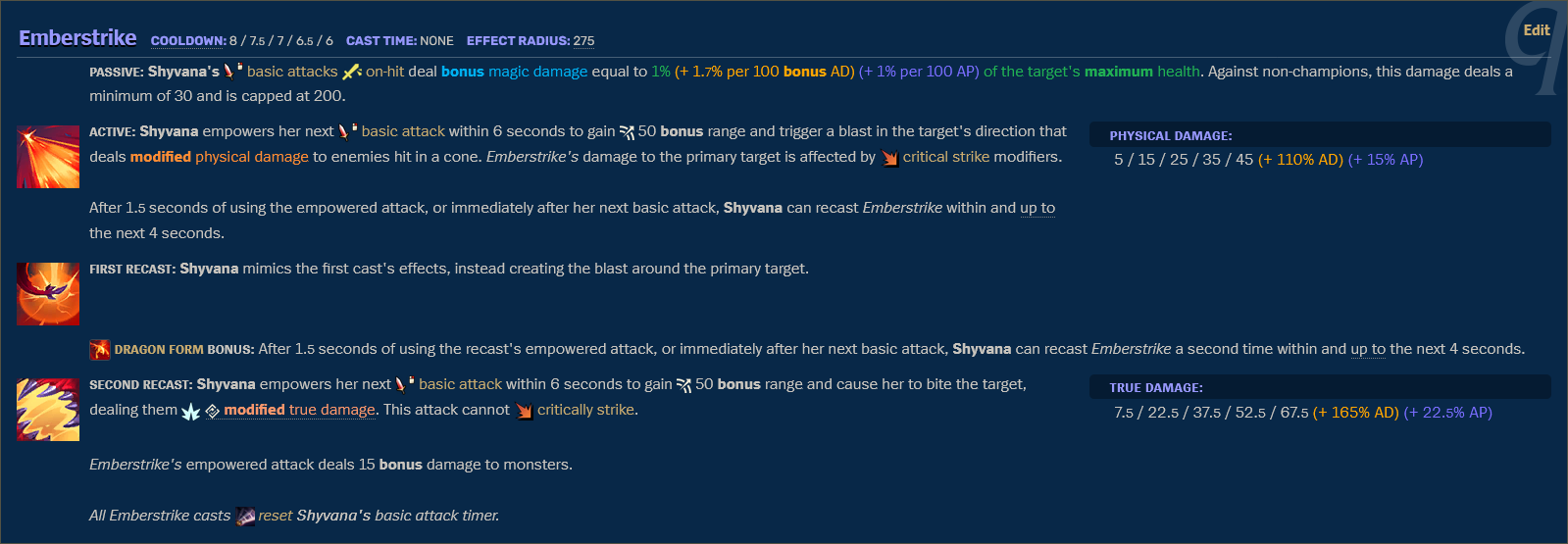 被动:强化普攻,每次普攻附带额外伤害;主动:强化下一次普攻,提升攻击范围与伤害,短延迟后可再次施放。