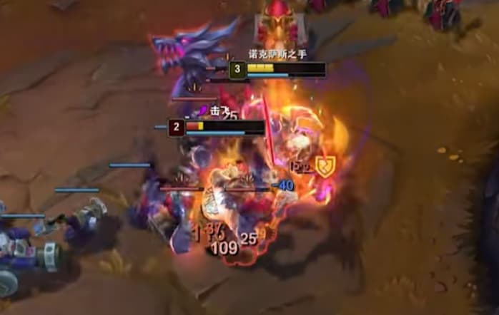 诺手打奥拉夫属于是有点难度了,上线带多蓝盾好一点,不然太难打了,俩斧头老猛了。