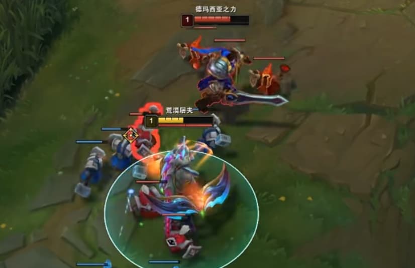 如果是E,咱们就AWA就可以走了,学E的盖伦一级还是比较猛的,而且他还能抢二,慢慢补刀别着急。