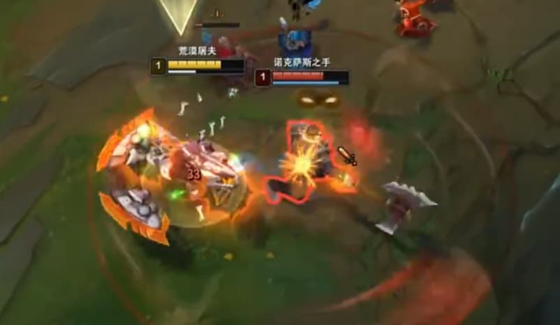 半血的诺手就是斩杀线,半血他如果不走,A小兵A到红怒,诺手给距离就EWA红怒Q,他连反应的时机都没有。