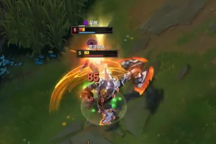 基本上换血一次,他就打不过了,鳄鱼的斩杀线是很高的,对面技能交完直接开大,E接红怒W,A人续红怒,红怒Q回血,在A续红怒,然后红怒E。