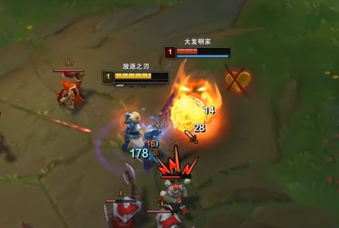 锐雯的追击爆发是半血,可以根据情况换血,等升六的一瞬间带走他,大头强势的地方在于后手,他晕住然后集火E伤害很爆炸。
