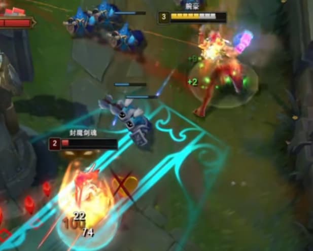 这样的话就是连招比较快,技能取消后摇。这里他没给机会,所以抢三在打他一套,腕豪的斩杀线也是比较高的。