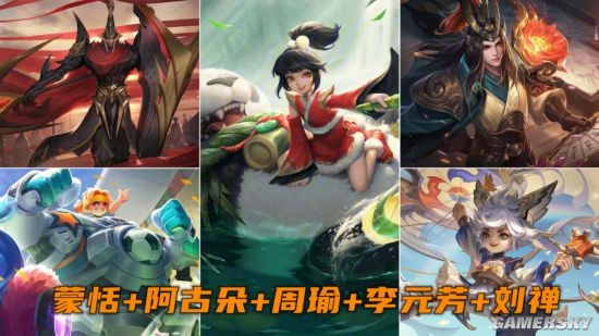 梦怡+阿古朵+周瑜+李元芳+刘禅这套阵容是以蒙恬为辅,其余四个位置为核心的推塔阵容,由于阿古朵四级前较弱,所以中辅上选择了高强度且推塔能力优秀的周瑜与刘禅,以防止己方野区被入侵,而射手位的选择自然就是推塔小元芳了。
