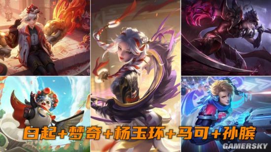 白起+梦奇+杨玉环+马可+孙膑这套组合大家再熟悉不过了,也就是峡谷永动机的“孙白杨”体系,这套阵容是以杨玉环为核心,白起孙膑为辅,而三人之间回复效果很是无解。