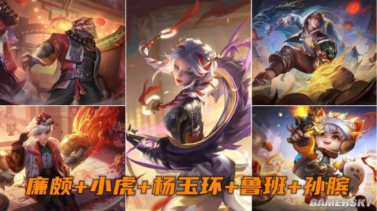 廉颇+小虎+杨玉环+鲁班+孙膑相信大家已经发现,今年虎年限定皮肤也是恰好对应了五个位置,这不就是妥妥的开黑上分组合,廉颇能抗能打充当前排,而孙膑、杨玉环相辅相成为天然的最佳搭档,再加上小虎的节奏运营,中野辅在前中期很容易就能通过高频转线牵着对面的鼻子走,而射手位上的鲁班虽然腿短但伤害极为稳定,若是比赛拖到大后期,廉颇前排一顶,在杨玉环孙膑保护下,鲁班还不是稳稳输出肆意拿捏,剩下的,就交给小虎收割吧。